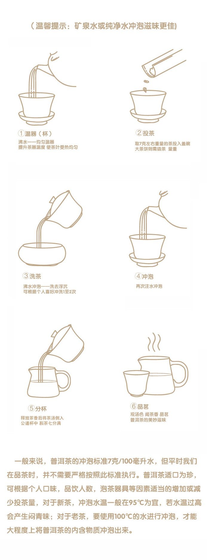 茶具选择玻璃杯为佳,茶水比1:18,水温100℃,润茶、注水后10s出汤,可冲泡10余次。