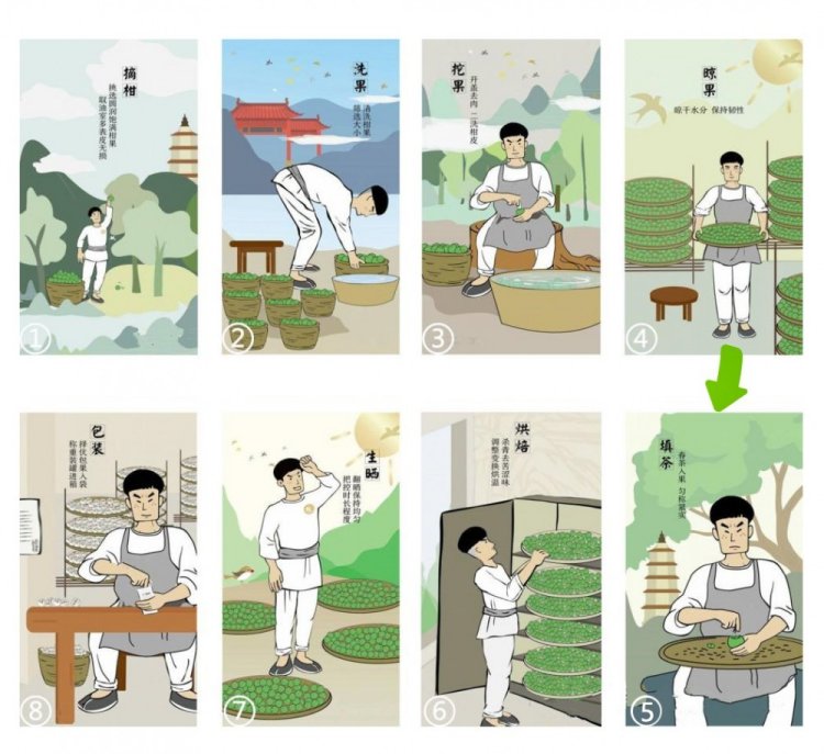 大红柑主产于广东省江门市新会茶坑、天马、梅江、东甲、西甲等地,而大红柑内部的茶叶产于云南省勐海等地。