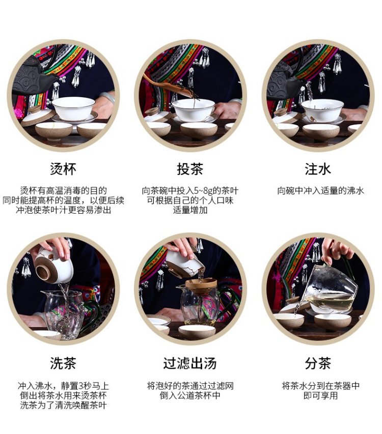 茶具选择玻璃杯为佳,茶水比1:18,水温100℃,润茶、注水后10s出汤,可冲泡10余次。