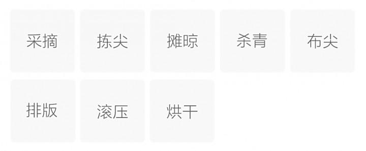 扁平、两叶抱一芽、少量单片、毫不显、尚匀整